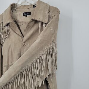 Genelli Mens Leather Fringe Jacket Size XXL Blonde Tan Coat Vintage