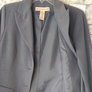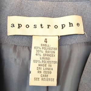 Elegant gray blazer by Apostrophe. Features a classic notch lapel and three-button closure. Perfect for professional settings.