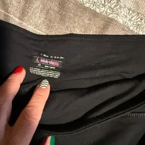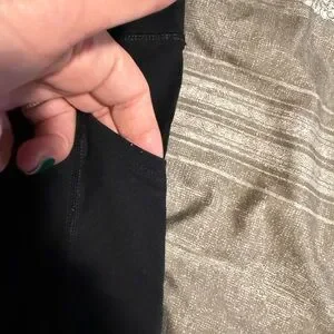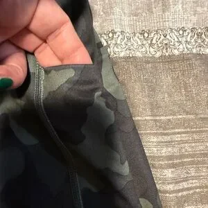 Camo pattern with black accents. Ideal for exercise or wearing under a dress! Both have pockets for cell phones on each side!