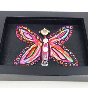 Original vibrant butterfly art in a sleek black frame. Perfect for adding a pop of color to any space.