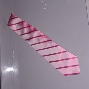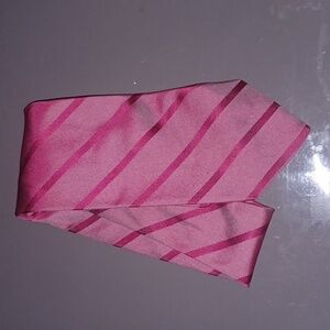 Stylish, pure silk tie with pink stripes. Ideal for formal wear. Woven in Italy. In great, gently-used condition.