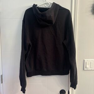 Oversized fit in cozy black fleece—perfect for a minimalist street look or relaxing after a workout.