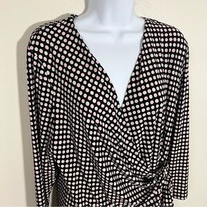 Anne Klein Chic Pink Black Polka Dot Women's Wrap Top Plus Size XL Office