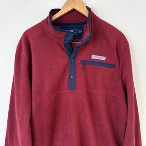 Vineyard Vines Mens Harbor Fleece Quarter-Snap Pullover Crimson Red Sz XL
