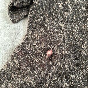 Two major holes, one at the armpit and one on the back. Hoping someone can either repair or use the amazing quality fabric for something! Sold as is. Peruvian Connection size small tunic sweater. 100% Lambswool.