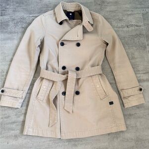 G-Star RAW Women's Beige Trench Coat XS 100% Cotton Belted Double Breasted