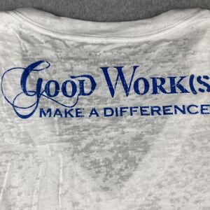 * Item: New Good Works Make A Difference Tshirt Womens Small White Peace Love Japan V Neck Short Sleeve Sheer Lightweight