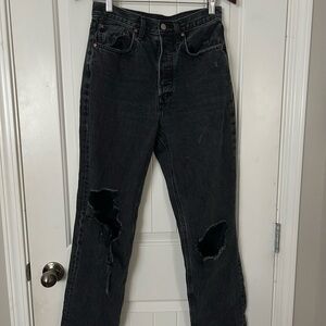Elevate your style with these high rise jeans. Distressed details add edge. Perfect for any occasion.