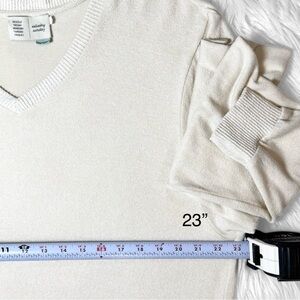 Anthropologie Cream V Neck Long Sleeve Fleece Sweater L