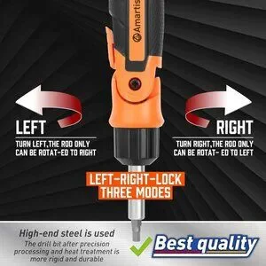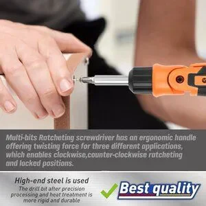 High-Quality]: Multi-bits Ratcheting screwdriver has an ergonomic handle offering twisting force for three different applications, which enables clockwise,counter-clockwise ratcheting and locked positions.