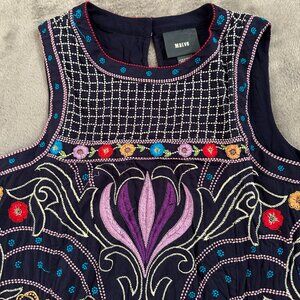 Maeve Anthropologie Kira Embroidered Tunic Dress Women's 10 Navy Blue