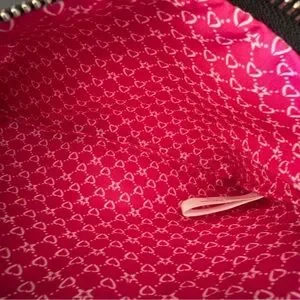 🏷️ Red heart-print lining | 💼 Small pouch silhouette