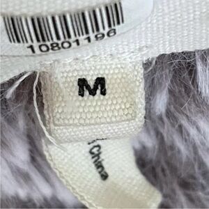 Jacket is beautifully soft made of faux fur. It has a full zip front and is a woman’s size medium.