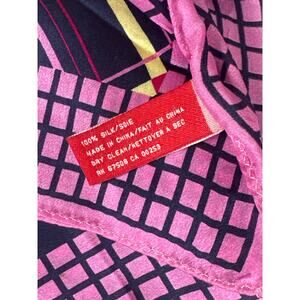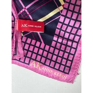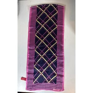 Y2K Anne Klein 100% Silk Scarf Preppy Bubble Gum Pink Navy Blue Argyle Girly