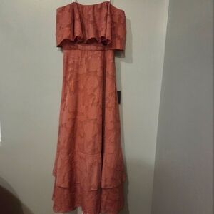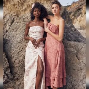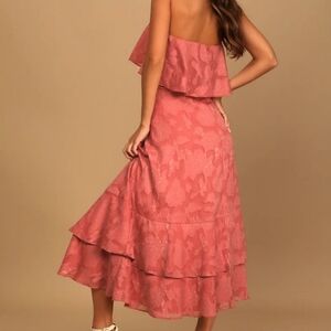 Lulu's Women's Pink Burnout Floral Strapless Bohemian Boho Midi Dress. Size M