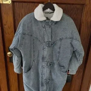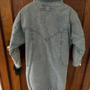 NWT Vintage Acid Wash Denim Jacket Fleece Lined Jean Anorak 80s Andy Johns