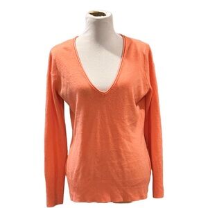 NEW YORK & CO Coral Orange Peach V-Neck Sweater Top Large