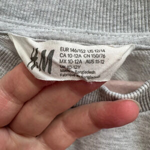 NWOT H&M 12/14 Girls Gray Sweatshirt Blouse with Ruffled Sleeves Ready to Fly