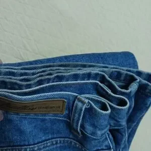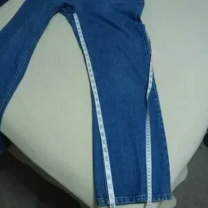 Vintage blue jeans in excellent preowned condition. High waisted and straight leg. Size 14. Approximate flat lay measurements shown in photos. Some wear/light staining to the hems (see last photo).