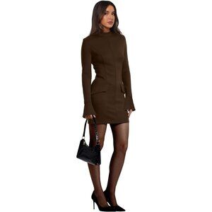 Women's Fall Long Sleeve Mock Neck Dress Basic Party Bodycon Mini Dress Coffee