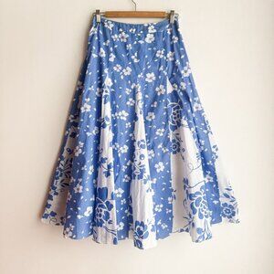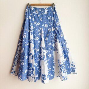 Tabi Petite Blue White Floral Midi Skirt S