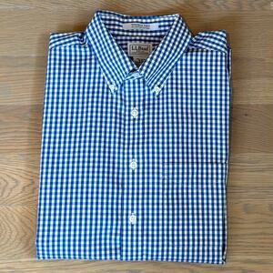 New Without Tags LL Bean Wrinkle Free Slightly Fitted Button Down Dress Shirt Mens Size 16/35 (SLIM LARGE). Blue and white gingham check. White buttons. Slightly slimmer fit. Lightweight 100% cotton. Buttoned down collar. New condition - no tags. Smoke free home. NEXT DAY SHIPPING.