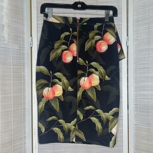Ted Baker Blayyke Peaches Ruffle Pencil Skirt Black Orange Rose Gold Size 0 NWT