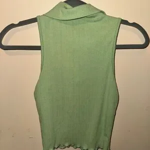 Stylish olive ribbed tank with a unique collar. Perfect for casual outings.