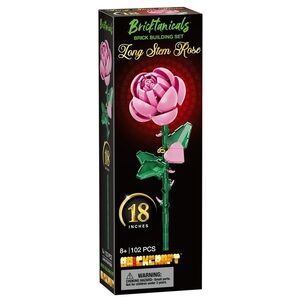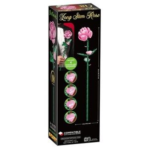 Build a beautiful long stem rose with this brick building set. Features pink petals and green leaves.