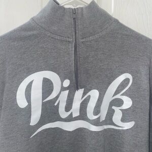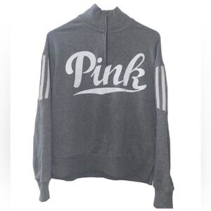 PINK Victorias Secret Woman’s 1/4 Zip Pullover Sweatshirt XS Gray White Stripes
