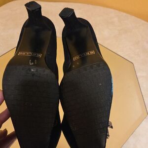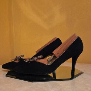 Step out in style with these elegant black heels featuring a chic leopard print bow.Leopard lining outline shoe. Very good Condition. Perfect for any occasion.Great deal!
