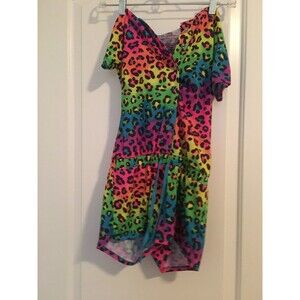 Justice Girls Colorful Leopard Print 1pc Pajama Romper Shorts Size 10 Multicolor