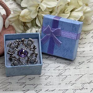Thistle Pin Silver Flower Scotland Classic Brooch Hat Pin Scarf jewelry Purple