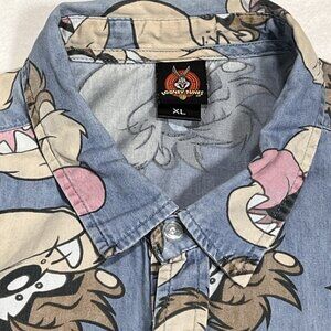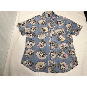 Looney Tunes Taz Button Up Shirt Mens XL All Over Print Warner Bros
