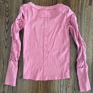 Free People Pink Daisy Chain Chain Cuff Long Sleeve Ribbed Cold Shoulder Top