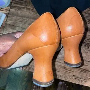 Lightly used, unbroken, great condition. Minor water damage on heels due to water bottle leaking in my dance bag - suede inner was unharmed.