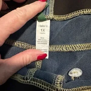 The most comfortable jeans on the planet. Soft, stretchy, no waist pinching. These are a regular inseam 30.” This pair is in their color “bright blue.” Smoke-free home. Only selling bc I’ve lost weight and gone down a size. Fabric content in 4th photo.