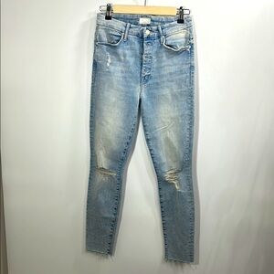 Mother The Pixie Ankle Fray Light Wash Distressed button fly jeans size 26