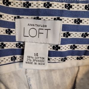 Ann Taylor LOFT Capri striped blue & white pants with splits at ankles Sz 14