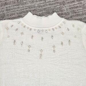 Chicos womens mock beaded sweater cream ivory size 2 or L