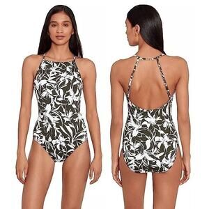 Lauren Ralph Lauren Tropic Monotone Floral High Neck One Piece Swimsuit 10