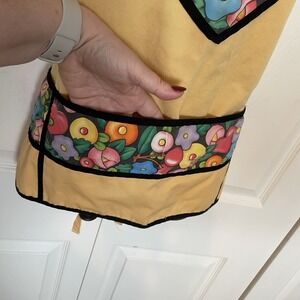 Vintage Mary Engelbreit Apron 90s Yellow Heart Buttons Contrasting Floral Print