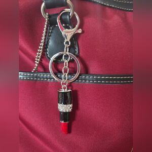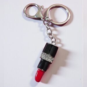 Add a touch of glamour to your accessories with this elegant lipstick keychain. Featuring a chic black and red design, it's perfect for fashion-forward individuals.