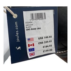 New Joules Ashwood Women US 5 Black Leather Faux Fur Warm Lace-Up Ankle Boots