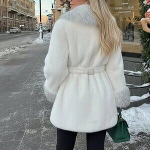 A white casual faux coat with a sleek faux collar offers a loose, comfortable fit for winter days. The long sleeves and regular hem provide coverage, while the open‑front placket and side pockets add practicality. Crafted from soft fake fur, this jacket delivers a stylish, cozy layer that pairs well with everyday outfits, making it a versatile addition to any cold‑weather wardrobe.