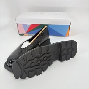 Katy Perry Lug Sole Loafers Platform Chunky Heel Black Patent Leather Size 9.5