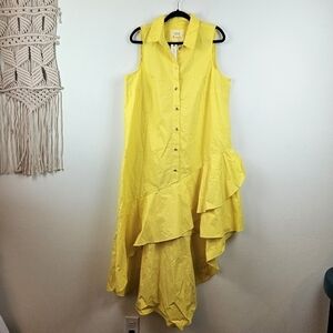 Anthropologie Maeve Sleeveless Buttondown Asymmetrical Ruffle-Hem Dress XL NWT