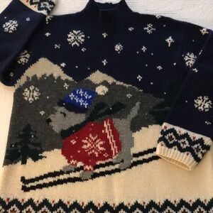 Vintage Lauren Ralph Lauren Dog Mountain Skiing Knit Wool Sweater Men’s S Unixex