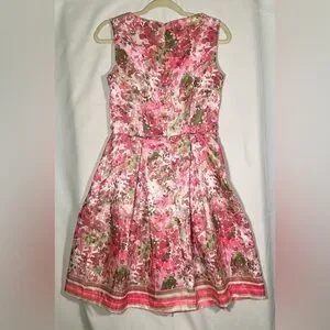 Karin Stevens Women's sz 8 Vintage Style Pink Floral Satiny Knee-Length Dress