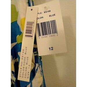 Focus Lifestyle Midi Skirt Blue Yellow Floral Lined Cotton - Size 12 NWT